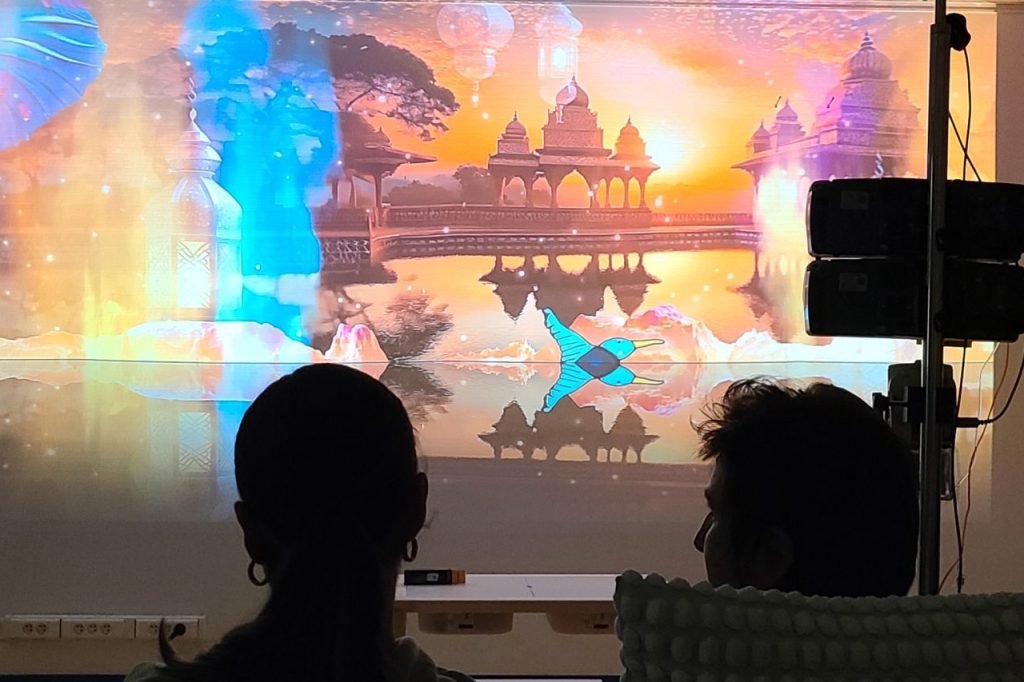 La projection de ces fresques numériques offre des bulles de beauté et de douceur aux patients et aux familles.