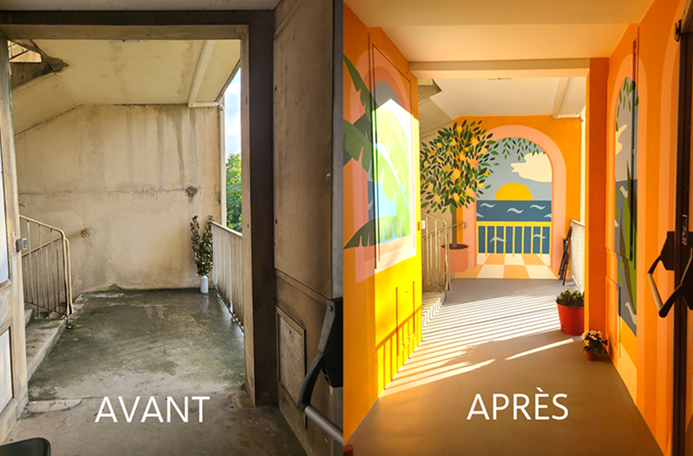 Ici, l’art a transformé une petite terrasse lugubre en un cocon de douceur et d’évasion. D’autres projets sont en cours en oncologie à Créteil et en soins palliatifs à Nantes.
