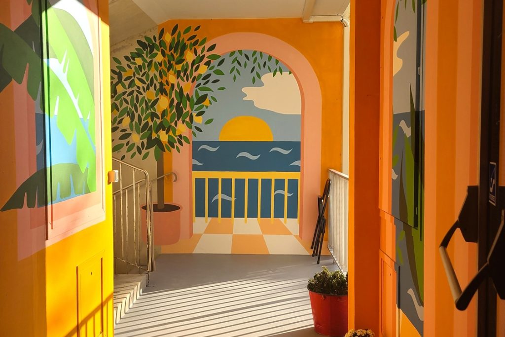 En soins palliatifs, la fresque de l’artiste Ems a transformé un pallier lugubre en un cocon de douceur pour les patients les plus fragiles et leurs familles.